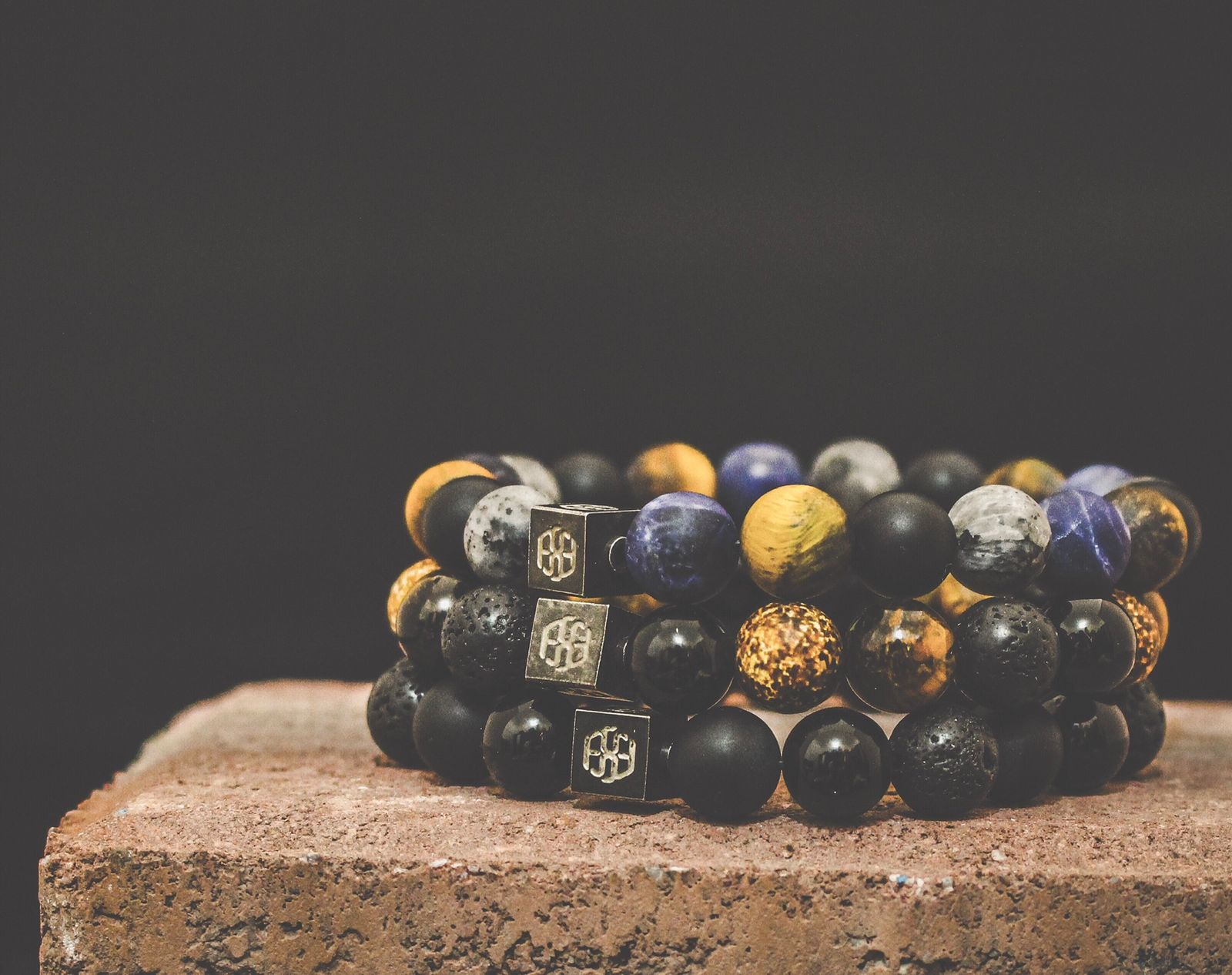 3101 Men's Signature Wristband with Black Onyx, Lava Stone, and Matte Black Onyx