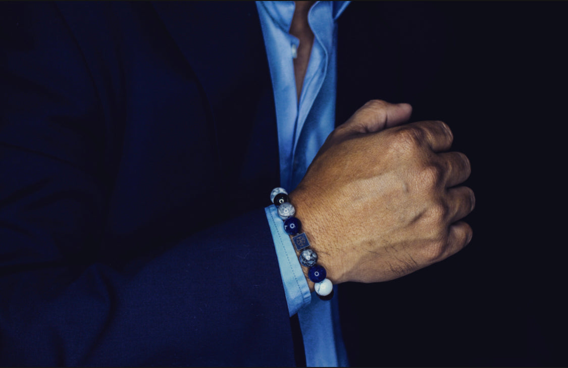 3103 Men's Signature Wristband with Dark Blue Sodalite, White Howlite, Gray Landscape Jasper, and Hematite