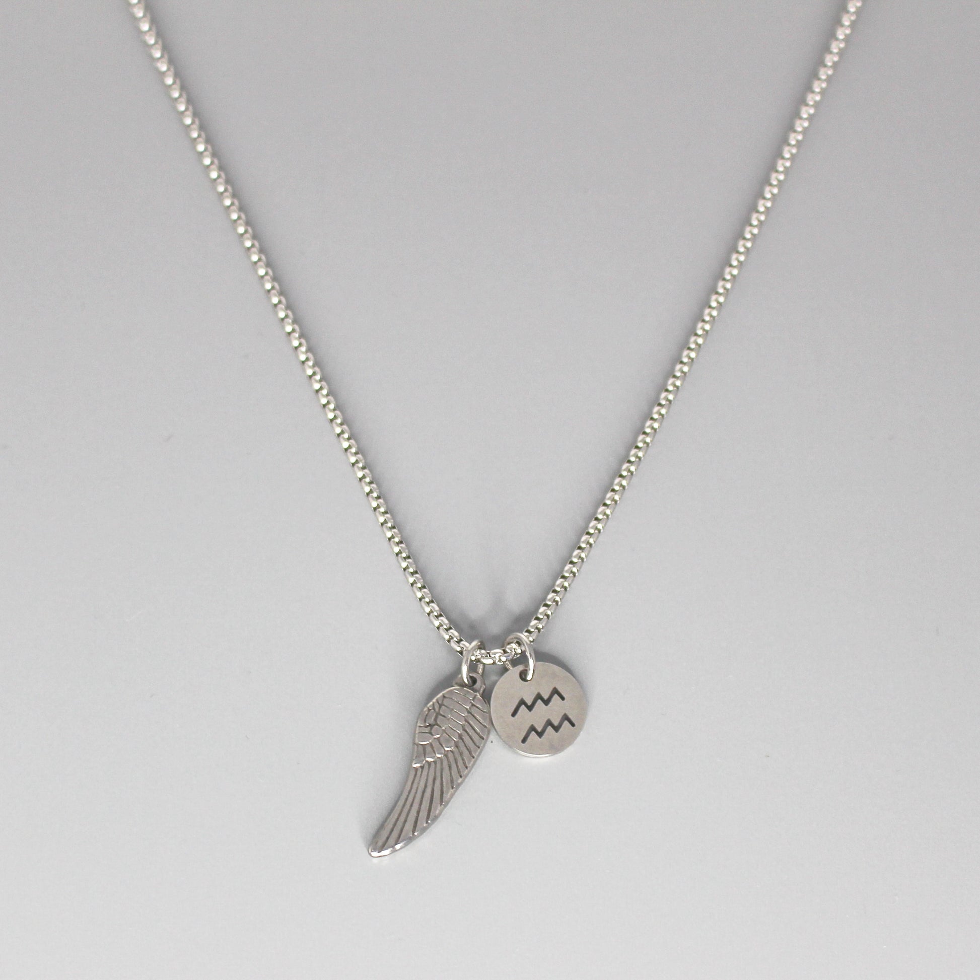 - Pendant Design: Double pendant featuring the Zodiac Aquarius symbol and an Archangel wing