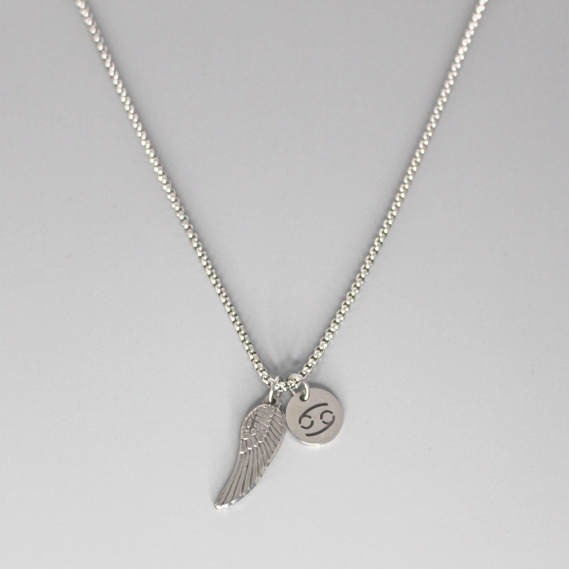 - Pendant Design: Double pendant featuring the Zodiac Cancer symbol and an Archangel wing