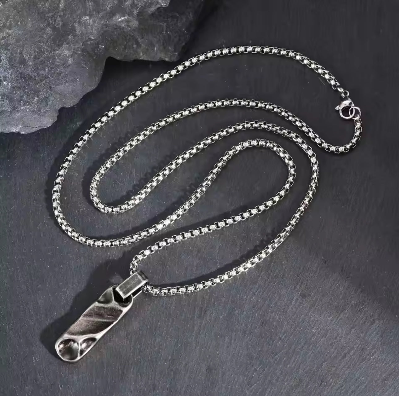 13218 Men’s Vintage Geometric Forge Bar Pendant Stainless Steel Necklace