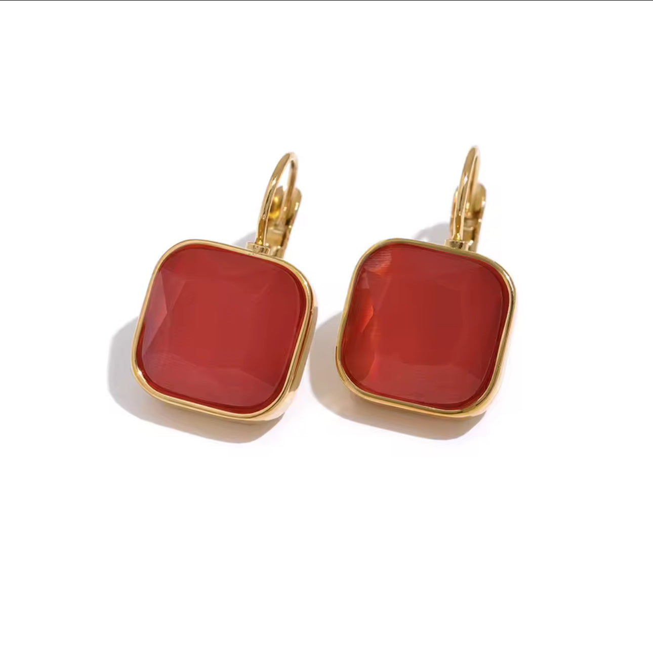 16184 Women’s Red Crystal Rhinestones Gold Plated Stainless Steel Hoop Earrings