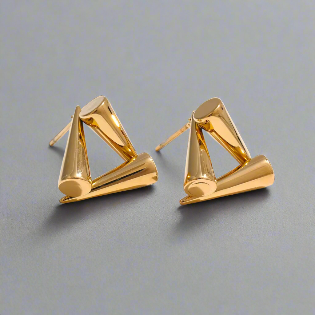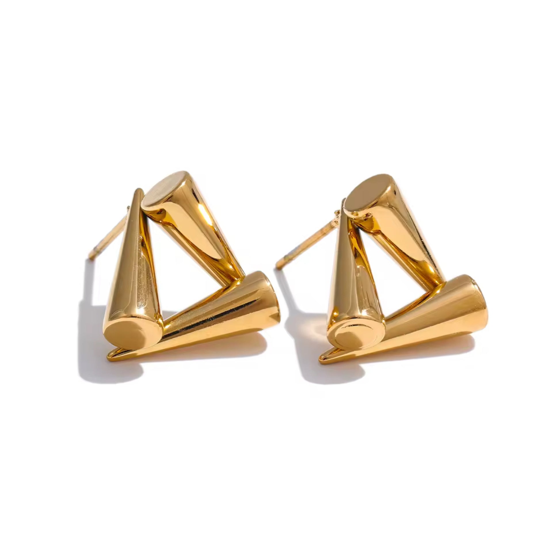 16185 Women’s Triangle Cone Gold Plated Stainless Steel Stud Earrings