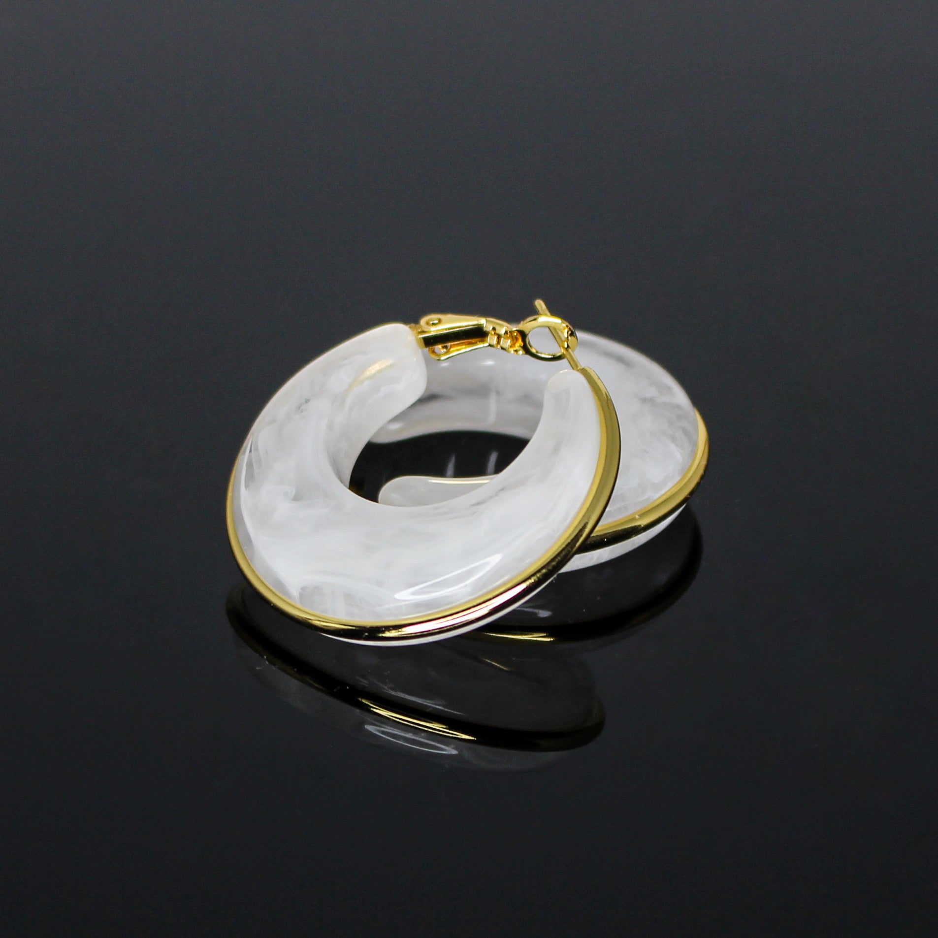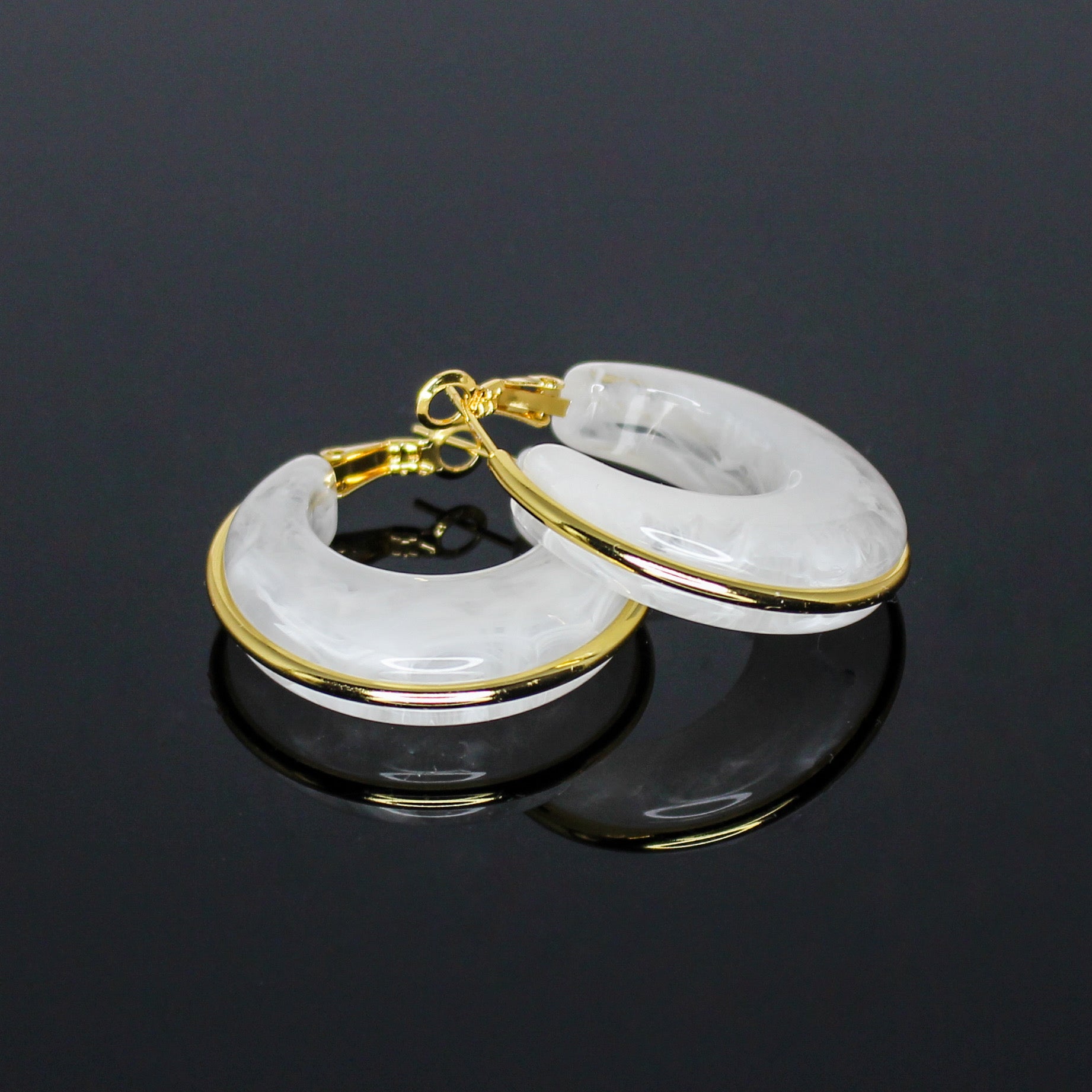 Bring a touch of timeless elegance to your style with the Luminous White Hoop Earrings. Crafted from high-quality resin in a soft translucent white with subtle marbled details, these chunky crescent hoops are elevated with real gold-plated stainless steel trim for a modern, polished finish. Lightweight yet bold, they’re versatile enough for everyday sophistication or evening glamour.