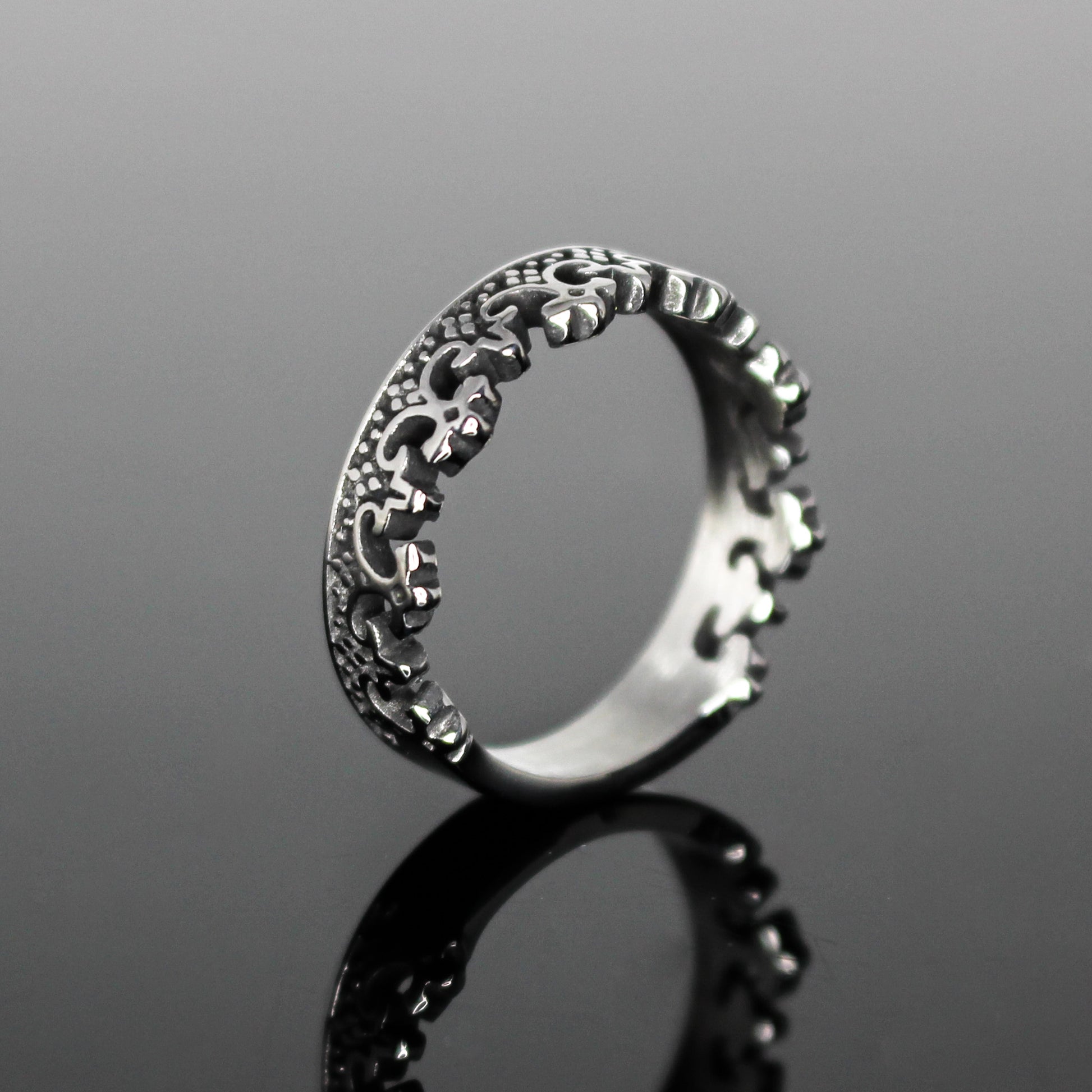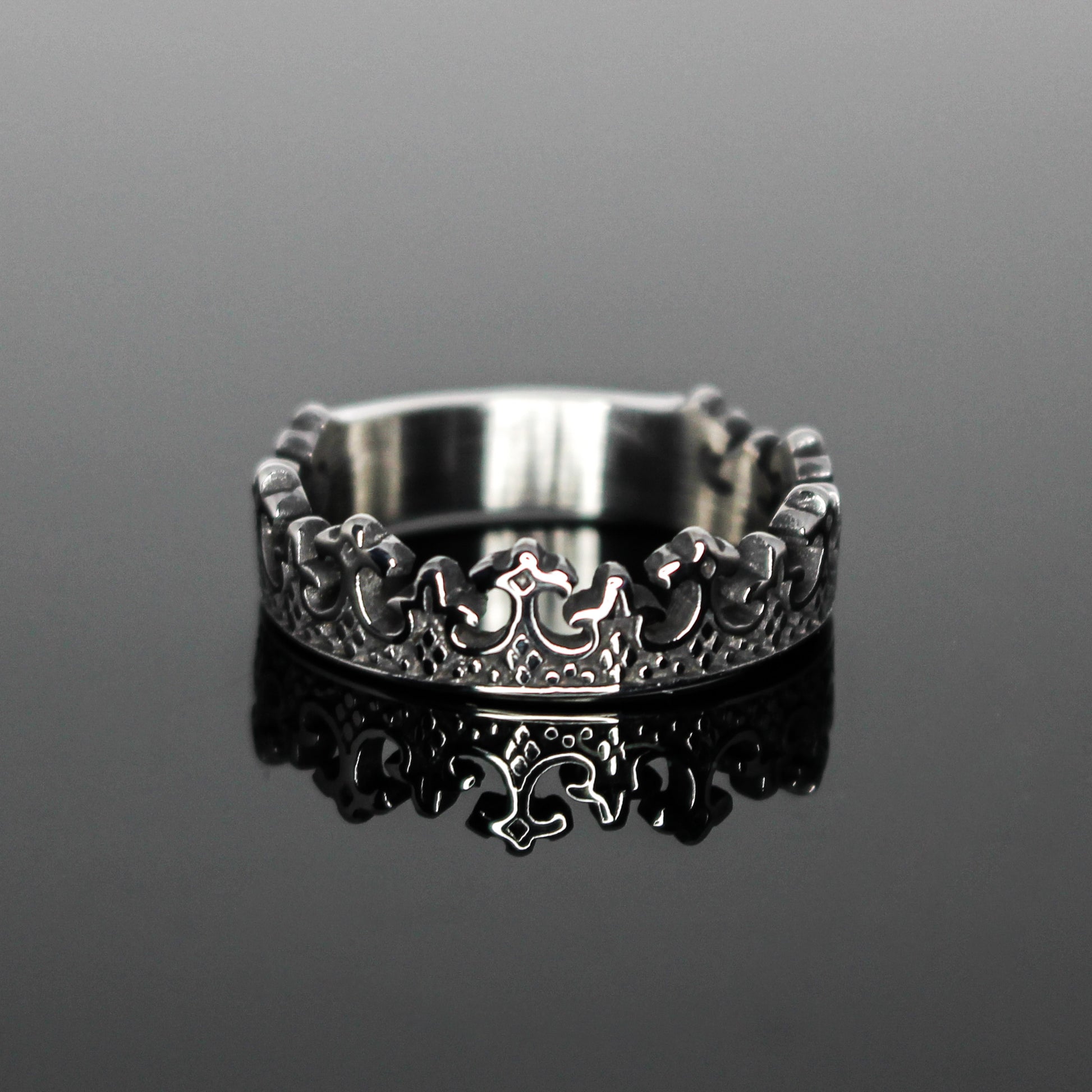 The Men’s Sovereign Crown Band Ring is crafted with an intricate crown motif, symbolizing strength, authority, and leadership. Its detailed design and oxidized accents create a commanding presence, making it more than just an accessory—it’s a mark of sovereignty and confidence. Durable yet refined, this ring elevates any look, whether worn solo or paired with other pieces.