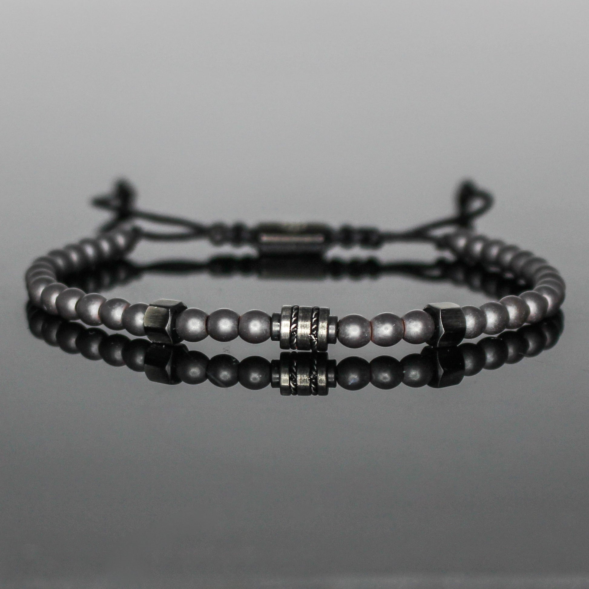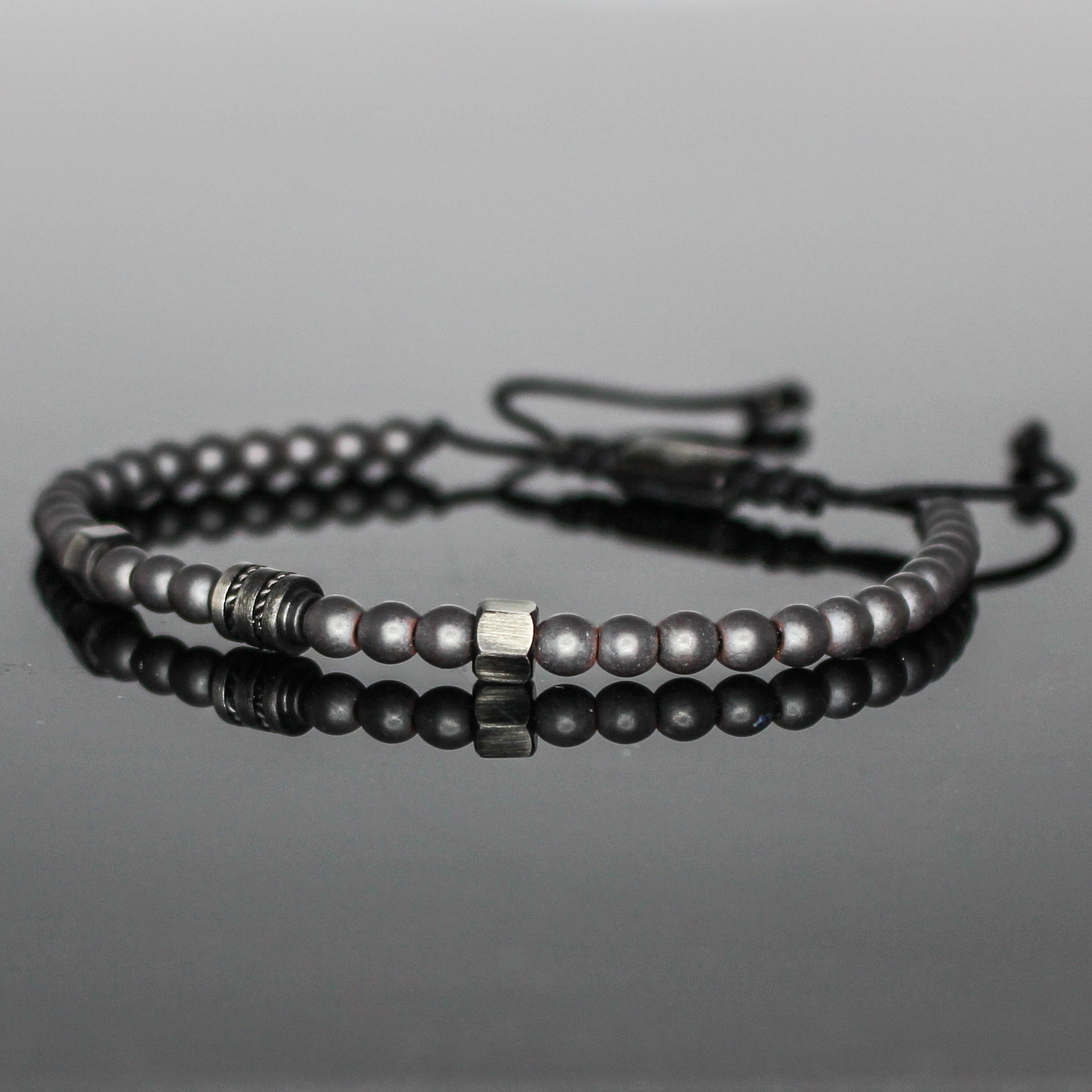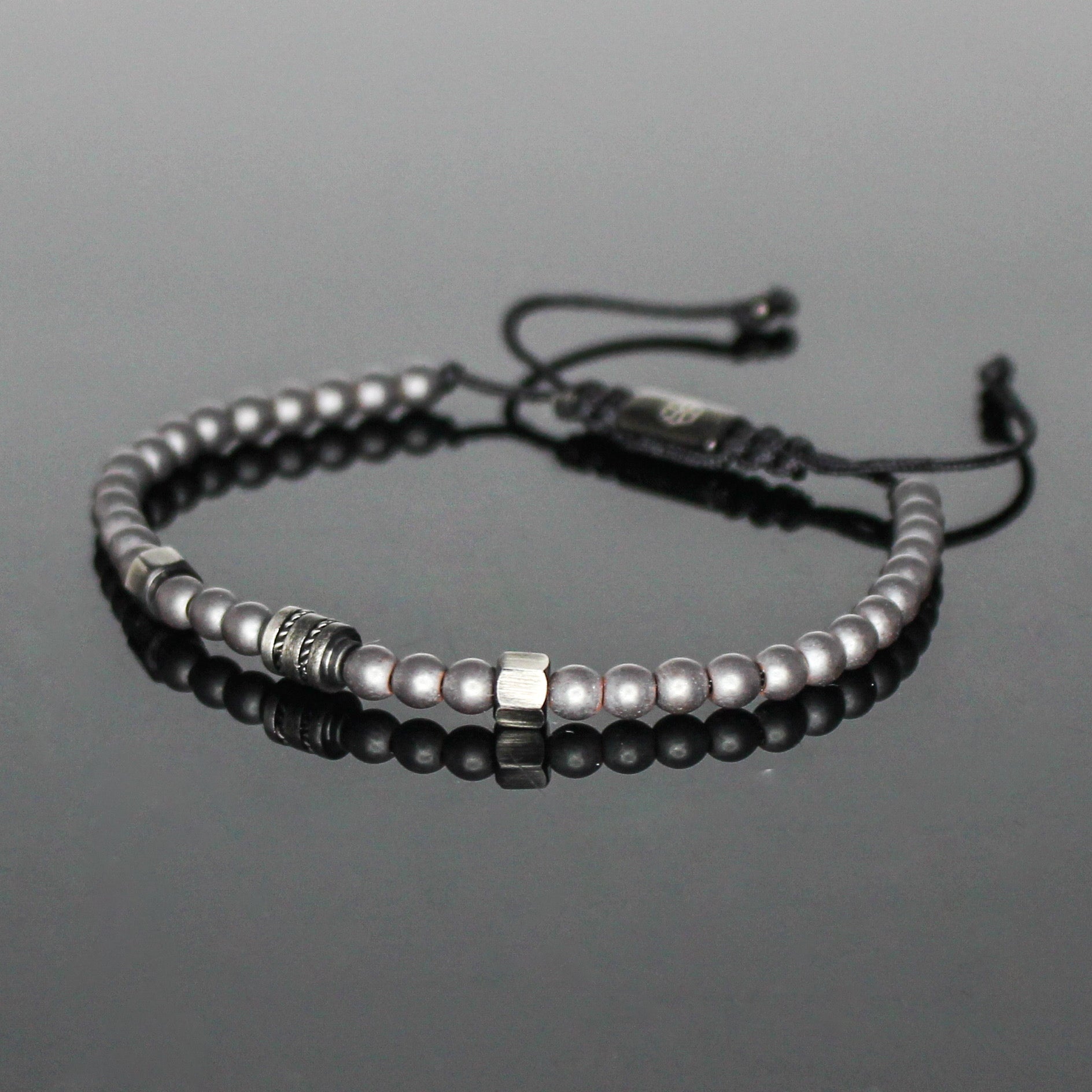 - Material: Natural Matte Hematite + Stainless Steel + Braided Nylon Cord