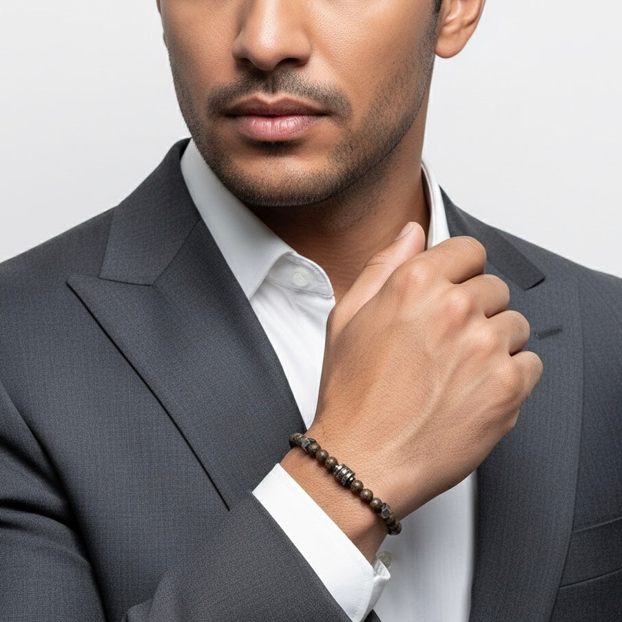 The Matte Bronzite Minimalist Beaded Bracelet is a powerful and masculine accessory that combines the natural beauty of bronzite with rugged design elements. Meticulously handcrafted, this bracelet is designed to elevate your style and make a statement of confident masculinity.