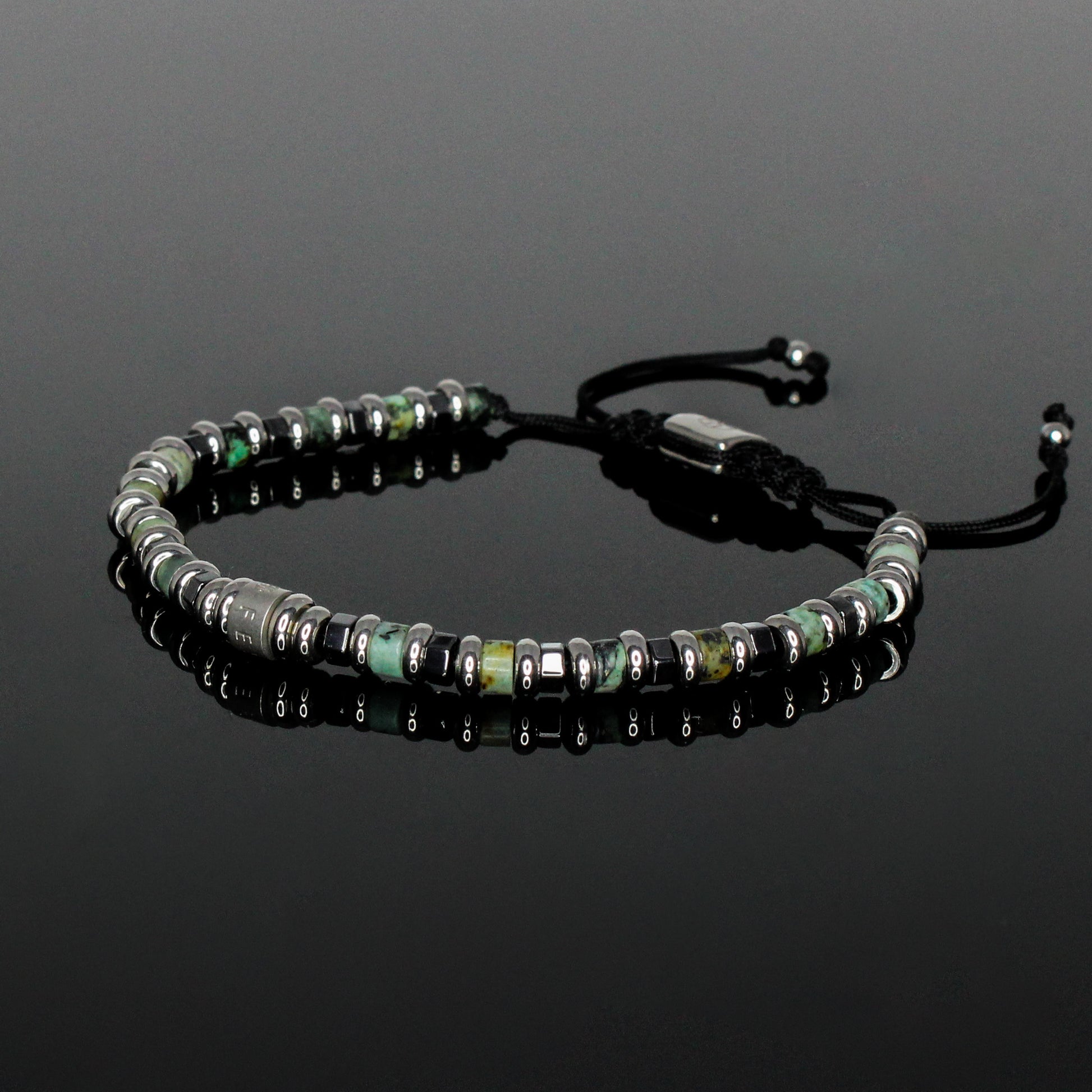 2051 Men’s Minimalist Heishi Beaded Bracelet with African Turquoise and Hematite