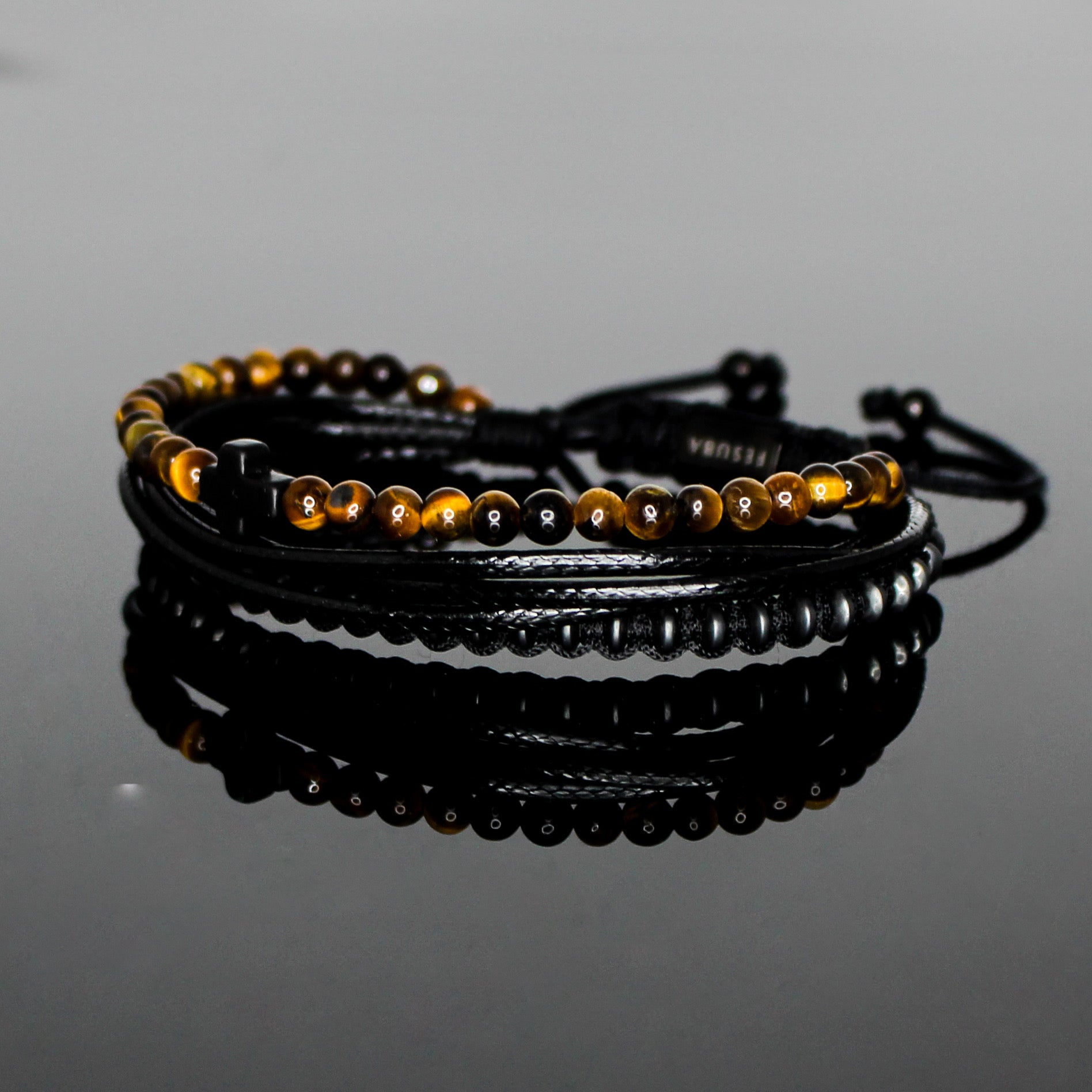 2230 Men’s Black Cross Multi-Layer Bracelet with Tiger’s Eye and Matte Black Hematite